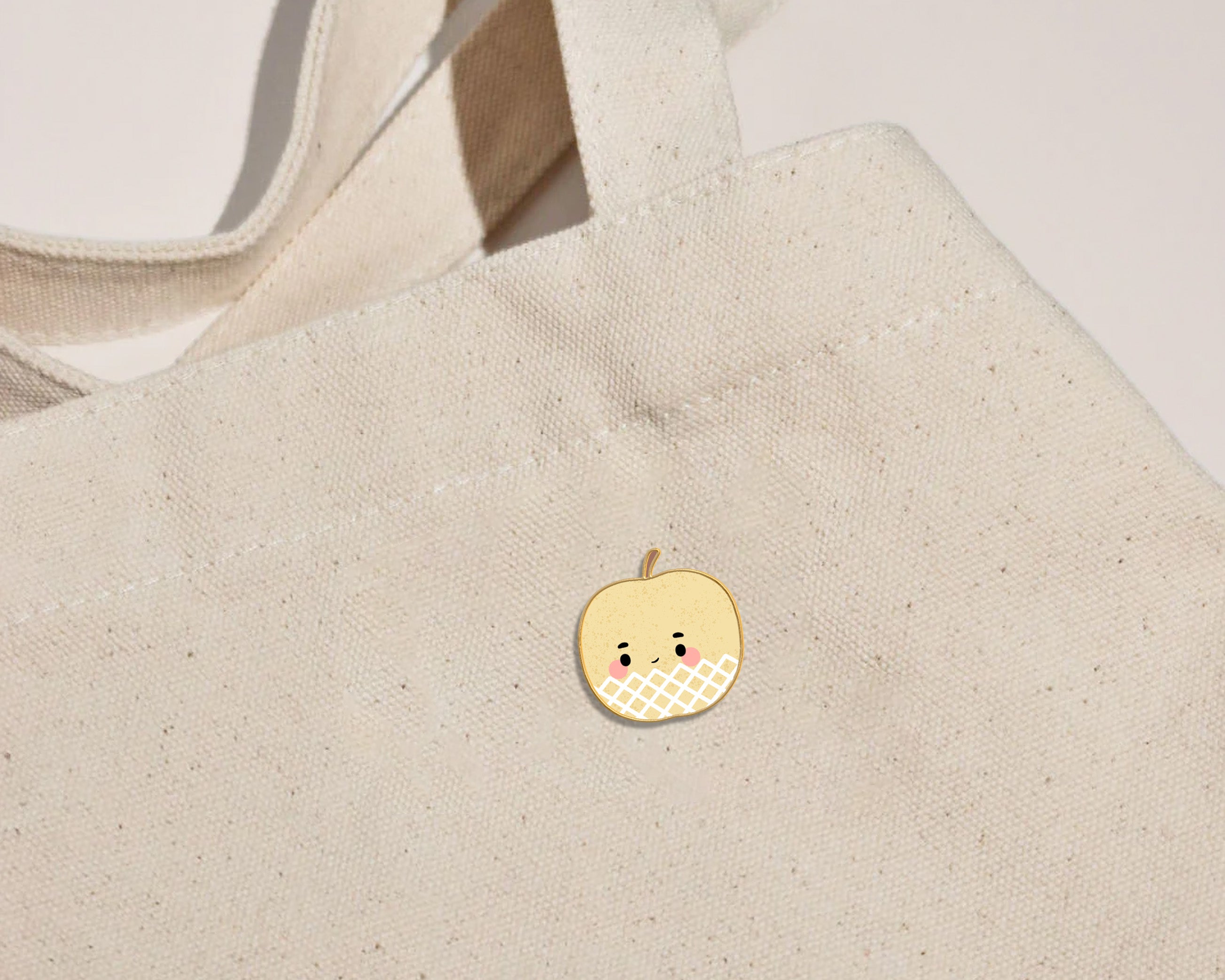 An adorable asian pear enamel pin for your tote bag, backpack, ITA bag or clothing! This is a cute addition, made with high quality enamel and gold metal finishes.