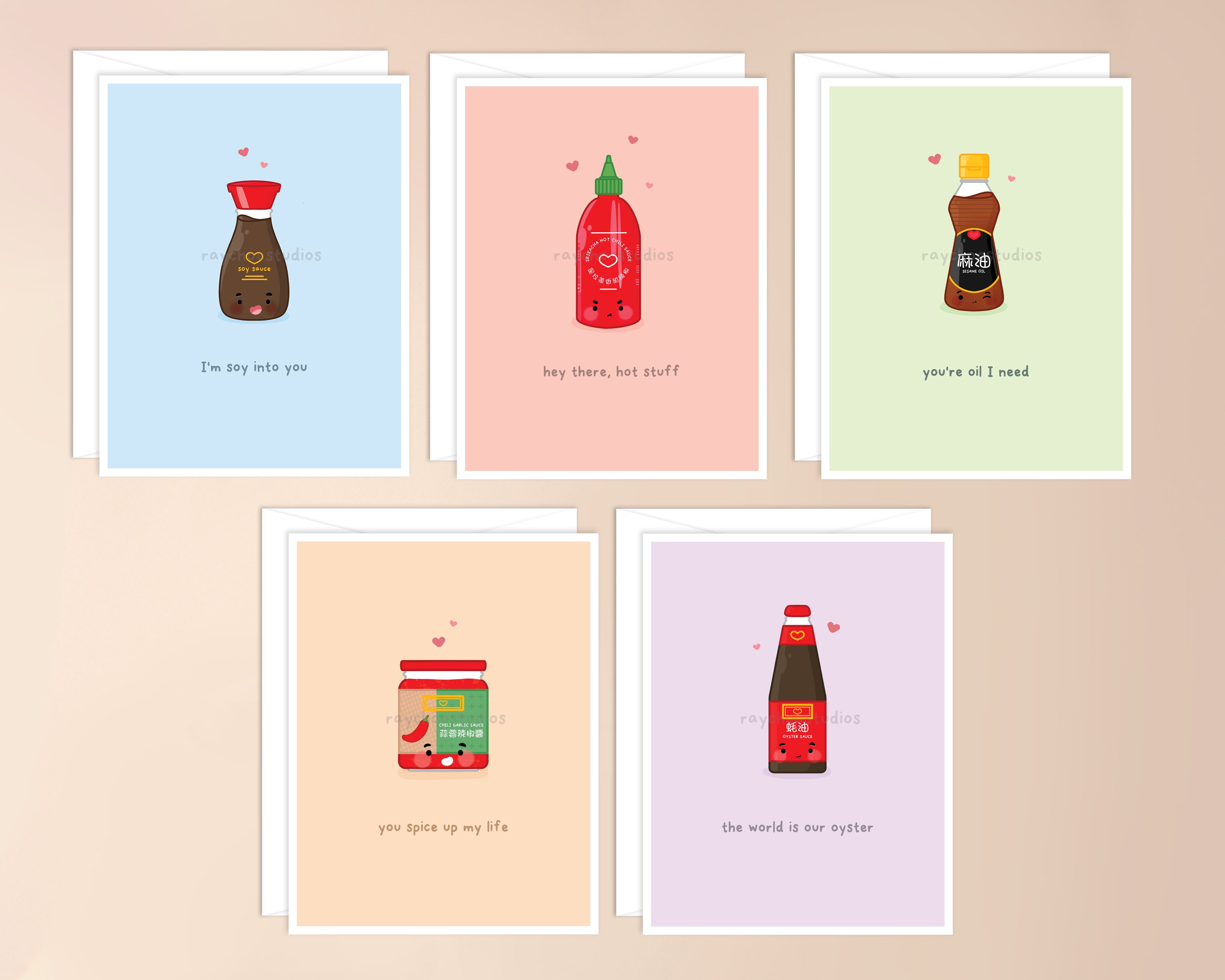 These asian sauces are a staple in every asian kitchen/household! Send someone a cute and spicy sriracha pun card!