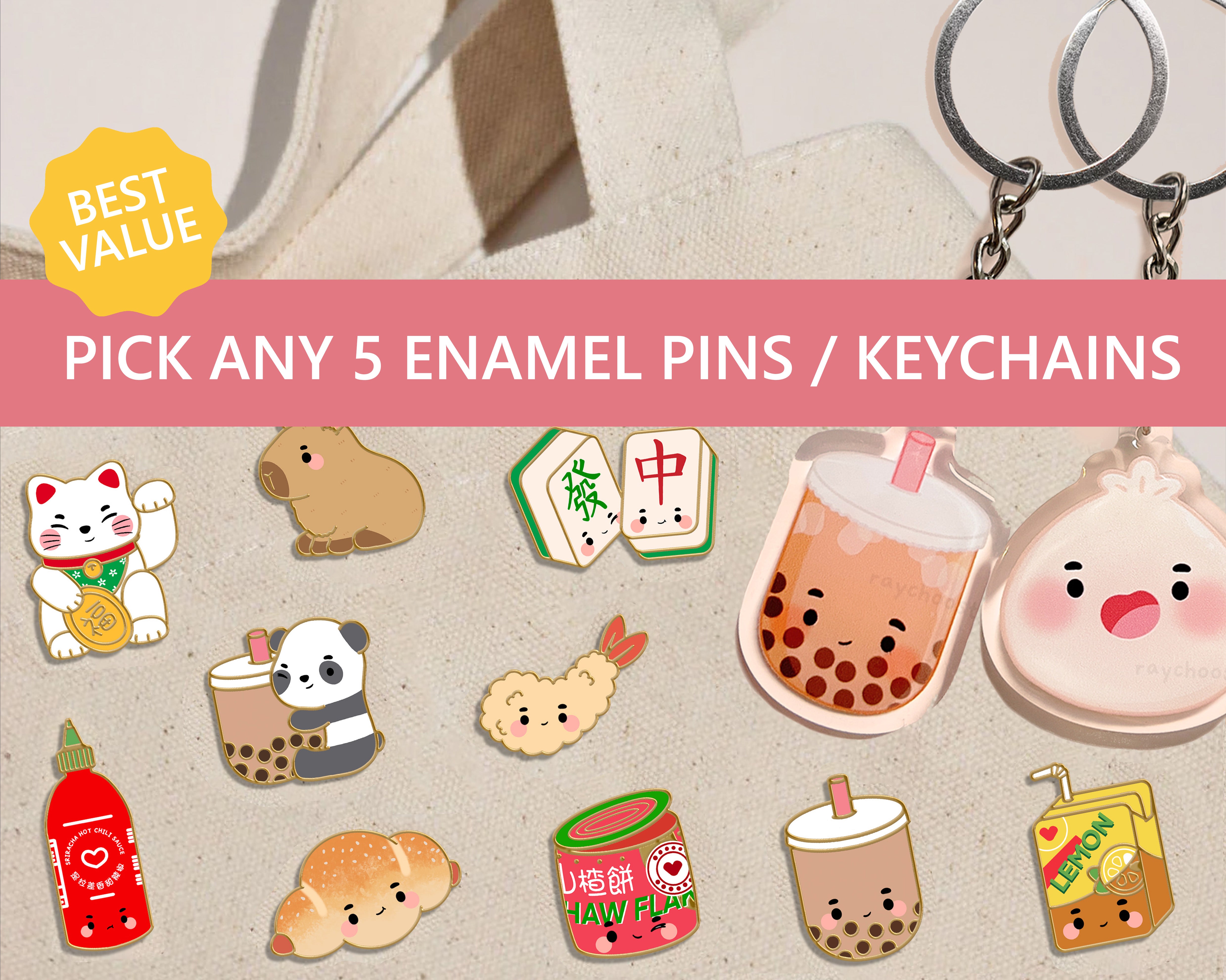 Value Bundle - Pick Any 5 Enamel Pins or Keychains – Raychoo Studios